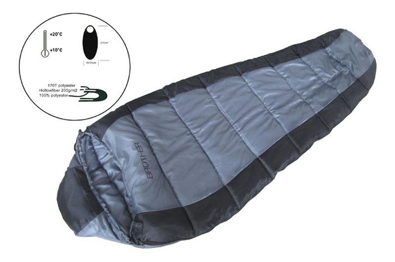 Spací pytel mumiový MUMMY 1, 210 x 80/55 cm , vrchní materiál je 190T polyester, vnitřní vrstva - tafatta = PES+bavlna, tepelná vložka - duté vlákno 200 g/m2, doporučeno až do 0 stupňů C, hmotnost 1,35 kg. Vhodný pro rekreační turistiku. Nenáročný na údržbu díky snadno omyvatelné vnitřní vložce.